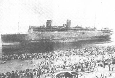 數(shù)千人聚集在阿斯伯里灘上觀看被燒焦了的“莫羅城堡”號 1934年9月8日,12.5萬余人眼睜睜地看著一艘起火的輪船上的130人被燒死而無計可施。這艘名叫“莫羅城堡”號的豪華客輪在澤西岸邊拋錨,今天清晨在暴風(fēng)雨中突然起火。起火原因尚未查清。 一些乘客們在他們的船艙里窒息而死。有些人站在甲板上大聲祈禱。另外一些人則毫不畏懼,他們站在一起唱“好啊,好啊,大家都在這兒”。當(dāng)燒紅了的金屬板熱得無法落腳時,多數(shù)人紛紛棄船。 一些跳海的人得以逃生。一個在廚房工作的20歲的古巴男孩游了2英里到了岸邊,雖已精疲力竭,但總算活了下來。有些人在救生船到來之前在寒冷的水中漂浮了六七個小時。其余的人都淹死了。 關(guān)于起火的原因眾說紛紜。船長在前一天晚上死于心臟病,他臨終時提醒代理船長注意一個電報接收員。船在哈瓦那拋錨時曾接到要對這艘客輪進(jìn)行破壞的恫嚇。那位報務(wù)員是古巴人。