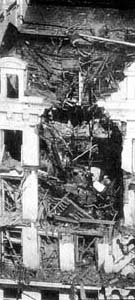 1984年10月12日凌晨3時左右,一家被用于正在舉行的英國保守黨第101次年會總部的大飯店,被暗藏在格蘭德飯店6樓一間房間里的20磅定時炸彈爆炸,炸塌了幾層樓,使集中居住在內(nèi)參加保守黨年會的多人傷亡。死者4人中包括1名議員。受傷的32人,其中重傷住院的有貿(mào)易和工業(yè)大臣特比特夫婦,保守黨首席督導(dǎo)約翰·韋克哈姆。撒切爾夫人僥幸在一分鐘前離開了后來被炸塌的寓室而安全無恙。住在她房間附近的外交大臣豪、內(nèi)政大臣布里頓,以及保守黨主席格默等人也未受傷。撒切爾夫人在事件發(fā)生后對英國廣播公司的記者說,“生活將照常進行,會議也將照常進行。” 據(jù)愛爾蘭共和軍聲稱,這次爆炸事件是由它制造的。 英國各政黨和全國輿論都譴責(zé)這種恐怖行動,也對幾乎造成整個內(nèi)閣傷亡的不力的安全措施提出指責(zé)。許多國家的領(lǐng)導(dǎo)人紛紛致電慰問。雖然爆炸事件使最后一天的保守黨年會減少了部分參加者,但撒切爾夫人在大會上冷靜而堅決的最后發(fā)言,獲得了長達(dá)8分鐘的起立致敬。