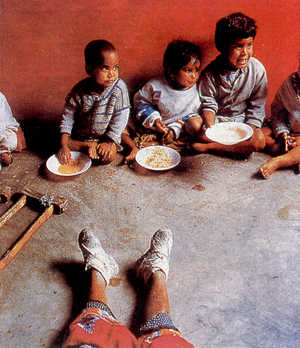 在麻瘋病中心,生病的母親和她們健康的孩子在一起生活