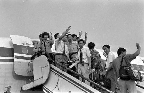 大陸記者赴臺采訪團成員登機離京 應臺灣“海峽交流基金會”邀請,大陸記者赴臺采訪團一行18人,1992年9月3日清晨乘飛機離開北京,踏上了赴臺采訪的行程。 這次活動是海峽兩岸分隔43年后,大陸記者首次正式組團赴臺采訪。 前來機場送行的海峽兩岸關(guān)系協(xié)會副秘書長劉剛奇和中華全國新聞工作者協(xié)會書記處書記王哲人在接受記者采訪時表示,經(jīng)過一番曲折,此次大陸記者赴臺采訪,為兩岸新聞界雙向交流邁出了一大步,也是海峽兩岸關(guān)系協(xié)會成立9個月來,所促成的大陸記者首次組團赴臺采訪。他們對臺灣有關(guān)方面為此做出的努力表示感謝,并希望以此為開端,今后兩岸新聞界雙向交流能夠更加擴大。 大陸記者赴臺采訪團由人民日報,新華社、全國記協(xié)、中央人民廣播電臺、中央電視臺、中新社、了望周刊、中國青年報、光明日報、經(jīng)濟日報、工人日報、半月談雜志,海峽之聲廣播電臺、現(xiàn)代中國雜志、團結(jié)報、臺聲雜志、福建日報等17家新聞單位的18位記者組成。 隔絕40多年的海峽兩岸新聞雙向交流9月5日邁出第一步,由幾名大陸記者組成的赴臺采訪團中午12時10分抵達臺北桃園機場,一時鎂光燈閃爍,話筒“林立”,臺灣同行熱忱地錄下這兩岸關(guān)系發(fā)展中新的一瞬。 來自17家新聞單位的18位大陸記者在機場受到臺灣海峽交流基金會的熱情迎接。采訪團團長翟象乾對守候在機場的臺灣同行說,此行將為兩岸新聞雙向交流打開大門。通過為期一周的采訪,采訪團將實事求是地報道在臺灣的所見所聞,讓大陸人民了解臺灣。增進兩岸之間的相互了解,溝通兩岸人民之間的感情。他稱此行“來之不易”希冀兩岸交流的大門越打越開,更多的大陸記者能赴臺灣參觀、訪問和采訪。 邀請和推動此行的“;鶗”董事長辜振甫,下午在接受大陸記者拜會時說,兩岸消除疑慮,建立共識,需要所有中國人的共同努力,“海基會”愿成為兩岸交流的橋梁,他認為,兩岸加強新聞交流,“對發(fā)展和改善兩岸關(guān)系將會產(chǎn)生正面的重大影響。”
