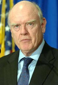 美國財(cái)政部長斯諾 2003年9月2日下午,中共中央政治局常委、國務(wù)院副總理黃菊在中南海紫光閣會見了來訪的美國財(cái)政部長約翰·斯諾一行。