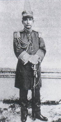 廣州軍政府大元帥孫中山身著戎裝像 1917年9月1日,國會非常會議舉行大元帥選舉會,孫中山以84票當(dāng)選為大元帥。翌日選舉元帥,唐繼堯、陸榮廷當(dāng)選。余一名元帥預(yù)定為程壁光,但程表示不愿居此名義。同日下午,眾議院議長吳景濂及國會議員數(shù)十人,乘艦至黃埔,舉行大元帥授印儀式。 吳景濂致大元帥頌詞道:“民國不造,倪、張倡逆。國會解散,大法掃地,以后清廷復(fù)辟之變,段祺瑞與張勛,同惡相傾,迭為起滅。屠清斯覆,而大總統(tǒng)亦被廢斥。景濂等依準(zhǔn)法國前例,開非常會議于廣州。金謂大盜移國,非武力不能熔治,西南各省與海軍第一艦隊(duì),兵力雄厚,士心效順。而部曲散漫,未有統(tǒng)帥,殊不足以取齊一之效。決議置海陸軍大元帥一人。前臨時大總統(tǒng)孫先生文,手創(chuàng)民國,內(nèi)外瞻仰,允當(dāng)斯任,即日赍致證書,登壇授受。悃忱未盡,復(fù)申是言。所愿我大元帥總輯師干,殲滅群丑,使民國危而復(fù)安,約法廢而復(fù)續(xù),不勝鄭重期望之至。” 孫中山致答詞說,“文以不德,忝為共和先導(dǎo)。民國成立,六年于茲,而梟雄畔換,頻煩不已,文不能救,自念無以對我邦人兄弟。今者叛督倡亂,權(quán)奸竊柄,國會解散,元首遷廢。此誠勇夫志士發(fā)憤倡義之時也。而遷延數(shù)月,大兵未舉,政府未立,內(nèi)無以攘寇亂,外不足以示友邦。文以國會諸君不釋之故,不得不統(tǒng)攝軍政。任職以后,唯當(dāng)竭股肱之力,攘除奸兇,恢復(fù)《約法》,以竟元年未盡之責(zé),雪數(shù)歲無功之恥。責(zé)任在躬,不敢有貳,諸所舉措,亦唯國會諸君實(shí)匡逮之。” 10日,孫中山在廣州就任海陸軍大無帥,正式另立政府以與北京政府對抗。他發(fā)表就職宣言表示:“艱難之際,不敢以謙讓自潔,即于六年九月十日就職。冀二三君子同德協(xié)力,共赴大義。文雖駑鈍,猶當(dāng)荷戈援槍,為士卒先,與天下共擊破壞共和者!”