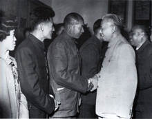 劉少奇接見時傳祥 1959年10月26日,國家主席劉少奇等黨和國家領導人親切接見了來自全國各條戰(zhàn)線的勞動模范,劉少奇的手和掏糞工人時傳祥的手緊緊地握在一起。 1959年10月26號,全國工業(yè)、交通運輸、基本建設和財貿方面社會主義建設先進集體和先進生產者代表大會在北京人民大會堂舉行。由于參加會議的都是各條戰(zhàn)線的勞動模范,人們形象地稱之為“群英會”。 會議開幕第一天,國家主席劉少奇,和全國人大常委會委員長朱德、國務院總理周恩來等黨和國家領導人,親切接見了參加大會的部分代表。 劉少奇走到一位身穿勞動服的工人面前,一把握住對方結滿厚繭的手,脫口而出:“你是老時吧!” 被劉少奇稱作“老時”的時傳樣是北京市崇文區(qū)清潔隊掏糞工,他萬萬沒想到,國家主席竟能一眼認出他來。時傳樣在舊社會掏過20多年大糞。在當時,這是個被人瞧不起的行業(yè)。解放后,勞動人民成了國家的主人。時傳祥以“寧愿一身臟,換來萬戶凈”的精神努力工作,贏得了全社會的尊敬。他光榮地加入了中國共產黨,并且作為北京市的勞動模范參加了全國“群英會”。 時傳樣向劉少奇介紹了清潔工人的情況。他說:我們現(xiàn)在的生活過得挺好。過去用轱轆糞車一車車推,平均每人一天背八桶糞。現(xiàn)在改用汽車運,工作效率提高了,平均每人一天背93桶半。大家并不滿足,還要為社會主義多出幾把力呢。 當劉少奇知道時傳祥只識二三百個字,連名字還寫不好時,他語重心長地說:老時啊!一個先進生產者,一個共產黨員,光工作好還不行,各方面都應該好。我們的事業(yè)越來越發(fā)展了,沒有文化哪行?我都這么大年紀了,現(xiàn)在還學習呢!你才45歲,時間還不晚,以后要好好學習,陰歷年的時候給我寫封信。 劉少奇把自己的英雄牌金筆送給了時傳樣,并誠摯地說:你掏大糞是人民勤務員,我當主席也是人民勤務員,這只是革命分工不同,都是革命事業(yè)不可缺少的一部分。 1960年元旦前夕,劉少奇果然收到了時傳祥給他寫來的信。 這是“群英會”上的一段插曲,也是一首社會主義的時代頌歌。