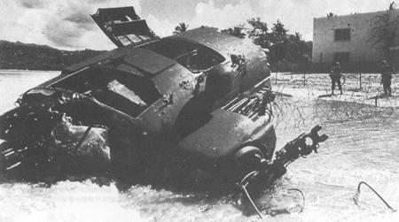 在對格林納達采取的軍事行動中,一架 美軍奇努克直升機被擊落在格林納達海灘