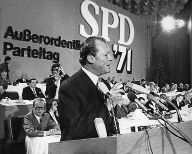 1969年9月,西德進(jìn)行大選。戰(zhàn)后長(zhǎng)期執(zhí)行的基督教聯(lián)盟失利,社會(huì)民主黨獲勝,同自由民主黨組成聯(lián)合政府。社會(huì)民主黨人勃蘭特于10月21日出任西德總理。這是1930年以來社會(huì)民主黨人首次組閣。