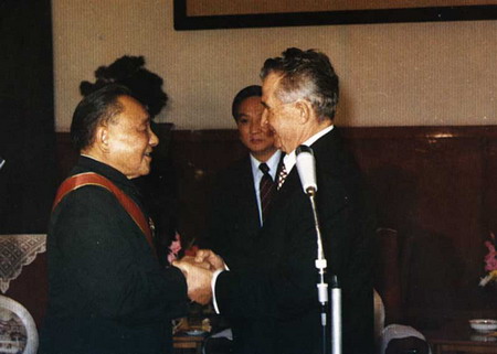 1985年10月羅馬尼亞總統(tǒng)齊奧塞斯庫訪華時向鄧小平受