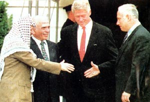 中東問題首腦會晤是由克林頓主持、巴勒斯坦自治政府主席阿拉法特、以色列總理內(nèi)塔尼亞胡、約旦國王侯賽因出席的四方首腦會晤,是在巴以之間爆發(fā)大規(guī)模暴力沖突后于10月1-2日緊急召開的。 1996年10月2日,以色列總理內(nèi)塔尼亞胡和巴勒斯坦民族權力機構(gòu)主席阿拉法特在華盛頓結(jié)束了為期兩天的“緊急首腦會晤”。會晤未能解決巴以之間存在的重大分歧,但雙方表示愿采取有效措施制止各種暴力行動,為重開巴以和談和繼續(xù)推進艱難的中東和平進程作出努力。首輪會談定于10月6日在加沙附近的埃雷茲舉行,首要議題是解決以軍從希伯倫撤離問題。 會晤結(jié)束后,美國總統(tǒng)克林頓作為東道主和主持人在白宮舉行了記者招待會?肆诸D承認此次會晤未能取得突破,巴以之間的“問題和分歧仍然存在”。但他說,這次會晤使雙方在“更高的層次上”就解決分歧和實現(xiàn)和解“達成了諒解”和“取得了信任”。