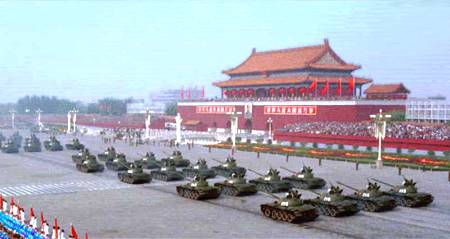 1984年10月1日,首都國慶35周年集會上舉行了盛大的閱兵 儀式。中央軍委主席鄧小平,由閱兵總指揮、北京軍區(qū)司令員秦 基偉陪同,乘坐敞篷檢閱車檢閱了受閱部隊。整齊威武的陣容展現(xiàn)出現(xiàn)代化人民軍隊的英姿。隨后。人民 解放軍陸軍、海軍?哲姾腿嗣裎溲b警察部隊以及民兵的一萬多 名官兵編成42個方隊。在雄壯的軍樂中依次通過天安門接受黨和 國家領(lǐng)導(dǎo)人的檢閱。18個徒步方隊步調(diào)一致,步伐堅定,表現(xiàn)了 人民軍隊一往無前的氣概。24個機(jī)械化方隊,裝甲輸送車、火箭 布雷車、新式坦克,火箭炮、榴彈炮,以及岸艦導(dǎo)彈、潛地導(dǎo)彈, 地空導(dǎo)彈和戰(zhàn)略導(dǎo)彈等如滾滾巨流,排山倒海,元堅不摧。同時 由94架轟炸機(jī)、強(qiáng)擊機(jī)、殲擊機(jī)組成的空中梯隊,由天安門上空 飛過。此次受閱部隊的武器裝備,都是我國自行設(shè)計、自行研制, 自行生產(chǎn)的,基本上實現(xiàn)了機(jī)械化,電氣化,自動化。這次盛大的閱兵式,是國慶10周年以來的第一次,是建國以 來規(guī)模最大、裝備最新,機(jī)械化程度最高的一次。它標(biāo)志著我國 武裝力量現(xiàn)代化建設(shè)進(jìn)入嶄新時期。