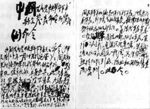 毛澤東起草的命令手稿