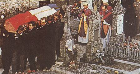 覆蓋著法國國旗的靈柩被送至科龍貝墓地
