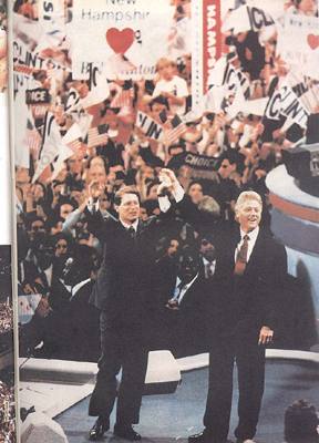 克林頓與競選伙伴、原田納西州州長阿-戈?duì)柟矐c勝利