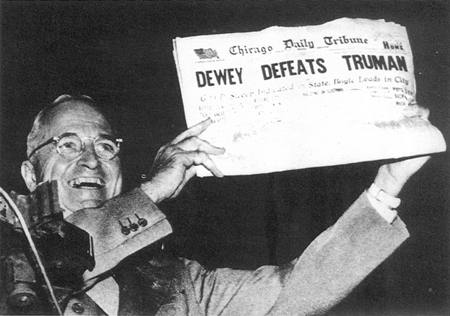 杜魯門高興地把刊登獲勝消息的報(bào)紙高高舉起