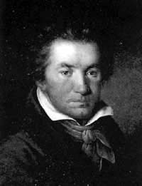 貝多芬是世界著名的作曲家。1770年12月16日生于德國波恩。這里離法國邊境不遠,當貝多芬19歲的時候,法國大革命爆發(fā),給貝多芬?guī)碜杂、平等、博愛的理想。幼年學習鋼琴。8歲開始登臺演出。1792年到維也納深造,受到嚴格訓練。1795年出版了第一號作品,此后出版了不少作品,幾乎涉及當時所有的音樂體裁。21歲,他寫了一首言志的歌曲《自由人》,決心把自己的一切獻給自由的事業(yè)。26歲時,就創(chuàng)作了3首奏鳴曲。可是就在這時,他不幸患了中耳炎,到1820年,兩耳完全失聰,這對一個音樂家來說,是一個多么沉重地打擊啊!但是,貝多芬并沒有屈服。他說:“我要扼住命運的咽喉,它決不能使我完全屈服。”他頑強地堅持創(chuàng)作,把全副精力都投入到音樂事業(yè)中去。在創(chuàng)作過程中,他為了克服失聰?shù)睦щy,就坐在樂隊近旁,看樂器演奏和演員歌唱。到了晚年,這個辦法也不頂用了。他就用一支小木桿,一端插在鋼琴箱里,一端咬在牙齒中間,在作曲時用來聽音。這個特別的聽音器,至今還保存在波恩貝多芬博物院里。貝多芬的一生是不幸的,10多歲時即開始承受家庭生活的經(jīng)濟負擔,沒有結婚。1827年逝世。但是,他留給人類9部交響曲、32部鋼琴奏鳴曲、5部鋼琴協(xié)奏曲、16部弦樂四重奏和其他許多重奏曲、舞劇序曲和管弦樂合奏曲,除最初3部奏鳴曲,其余都是失聰后的作品。貝多芬生前給自己規(guī)定:無日不動筆。他在創(chuàng)作時,忘記了自己的痛苦和不幸。在他的作品中,找不到一點自身不幸的痕跡。法國文學家羅曼·羅蘭給貝多芬以很高評價。他說:“但愿所有不幸的人,看到一個與自己同樣不幸的遭遇者,不顧自然的阻礙,竭盡可能地成為一個不愧為人的人……” 貝多芬最為著名的交響樂有《英雄》、《命運》、《田園》、《合唱》等,鋼琴奏鳴曲有《悲愴》、《月光》、《熱情》《獻給愛麗絲》等,以及歌劇、管弦樂、協(xié)奏曲、室內(nèi)樂等作品。被譽為“音樂上的英雄”。