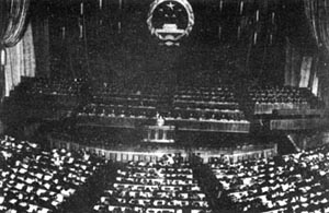 三屆人大一次會議 1965年1月4日,第三屆全國人大第一次會議在北京閉幕,政協(xié)第四屆第一次會議也同時在北京閉幕。周恩來在全國人大的工作報告中首次提出了在中國實現(xiàn)四個現(xiàn)代化的問題,即要“在不太長的歷史時期內(nèi),把我國建設(shè)成為一個具有現(xiàn)代農(nóng)業(yè)、現(xiàn)代工業(yè)、現(xiàn)代國防和現(xiàn)代科學(xué)技術(shù)的社會主義強(qiáng)國”。大會選舉劉少奇為國家主席,宋慶齡、董必武為副主席,朱德為人大常委會委員長,周恩來為國務(wù)院總理。政協(xié)選舉毛澤東為名譽主席,周恩來為主席,彭真等22人為副主席。