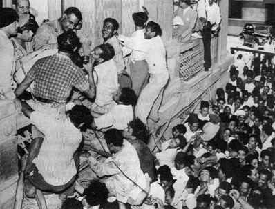1954年2月25日,納賽爾上校奪取政權,擔任埃及總理。 在納賽爾總理向全國發(fā)表廣播演說時,狂熱的群眾爬上總統(tǒng)府的陽臺擁抱他。納賽爾在他從納吉布手中接管政權以來取得的第一次主要勝利,是設法通過談判讓英國軍隊撤出蘇伊士運河區(qū)。經過艱難的討價還價后,于7月簽訂了一份英軍在20個月內分期撤軍的協(xié)議草案。然而,英國的“民間承包人”將在運河區(qū)保持一個基地,以防出現(xiàn)任何危及中東安全的情況。 英國政府按照協(xié)定完成了撤軍。但是在純粹的埃及民族主義者看來,只有“無條件撤軍”才是唯一可以接受的解決方法。納賽爾和他的同事很快就受到攻擊,說他們向英國出賣主權。極端的穆斯林兄弟會在1o月試圖暗殺納賽爾未成,此舉導致該組織被宣布為非法,其7名領袖被處死。  狂熱的群眾爬上總統(tǒng)府的陽臺擁抱納賽爾