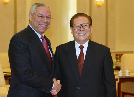 2003年2月24日國家主席江澤民會見美國國務(wù)卿鮑威爾