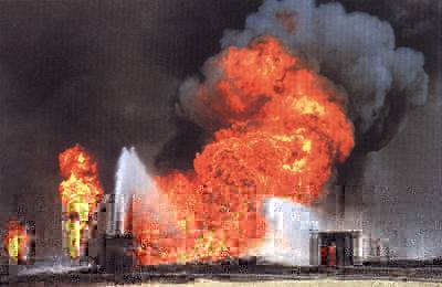 科威特油井燃起沖天大火
