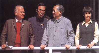 圖:1970年10月1日毛澤東與斯諾(左1)在天安門城樓上