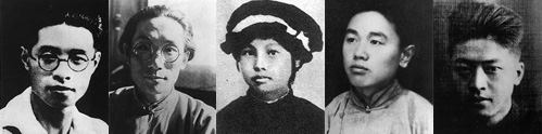 左起:胡也頻、柔石、馮鏗、殷夫、李求實(李偉森)1931年2月7日,胡也頻、柔石、殷夫、馮鏗、李偉森5位作家在上海龍華被國民黨淞滬警備司令部秘密槍殺。
