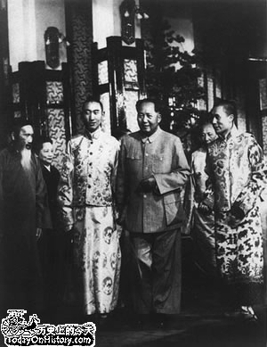 1954年毛澤東和達(dá)賴(右)、班禪在一起