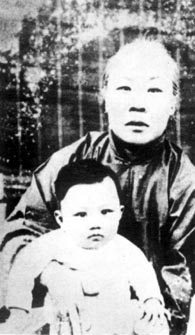 1歲的丁肇中在奶奶的懷抱里