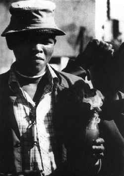 在抗議種族隔離制度的游行中,黑人青年準(zhǔn)備將燃燒瓶投向警察警察的催淚瓦斯能驅(qū)散一次游行卻挽救不了種族隔離制度在種族隔離制度下,這種長(zhǎng)凳黑人是不準(zhǔn)坐的
