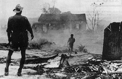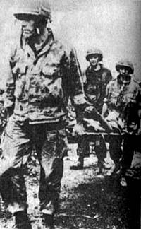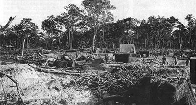 法越交戰(zhàn)之地 1954年3月31日, 北越游擊隊不斷向前推進并加緊對奠邊府機場四周的封鎖,使它陷于絕境之中。 在法軍遭到越盟炮擊和偷襲后,他們失去了幾處重要陣地。游擊隊悄悄穿過鐵絲網(wǎng)和地雷區(qū),偷襲法軍。惡劣的天氣和北越神槍手的準確性,給向被圍困地區(qū)空運物資造成了許多困難。法國飛機確實想方設法向北越投擲凝固汽油彈,但法軍無法阻止蘇聯(lián)汽車在沒鋪路面的道路上接連不斷地從中國運來救援物資。 艾森豪威爾拒絕取消美國在印度支那的軍事基地。  法國捕獲的越盟俘虜