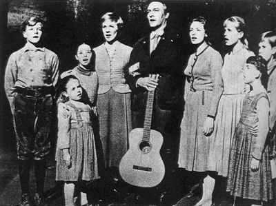 電影《音樂之聲》劇照(1965) 1966年3月, 由美國20世紀(jì)?怂构境銎返牟噬魳菲兑魳分暋帆@第38屆奧斯卡最佳影片;該片導(dǎo)演羅伯特-懷斯獲最佳導(dǎo)演獎;主演朱莉·安德魯斯。 本片根據(jù)在奧地利發(fā)生的真人真事而改編。描寫在1938年,年輕的見習(xí)修女瑪利亞到退役的海軍上校特拉普家中做家庭教師,上校幾年前妻子死了,教育孩子的方法也不得法,瑪利亞喜歡循循誘導(dǎo),以童心對童心,讓孩子們充分在大自然的美景中陶冶性情,孩子們對她象母親一樣,上校也決定娶她為妻。這時,德國吞并了奧地利,上校拒絕為納粹服役,并且在一次民歌大賽中帶領(lǐng)全家越過阿爾卑斯山,逃脫納粹的魔掌。 片中的插曲“再見”“雪絨花”,“音樂之聲”,“哆來咪”膾炙人口,流傳到至今。 影片獲1965年度第38屆奧斯卡最佳導(dǎo)演,最佳影片等五項大獎。