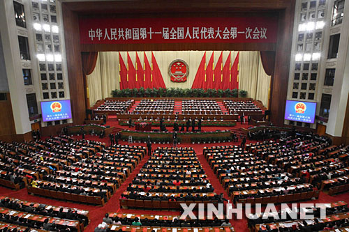 3月18日,第十一屆全國(guó)人民代表大會(huì)第一次會(huì)議在北京人民大會(huì)堂舉行閉幕會(huì)。 中華人民共和國(guó)第十一屆全國(guó)人民代表大會(huì)第一次會(huì)議,在圓滿完成各項(xiàng)議程,產(chǎn)生新一屆國(guó)家機(jī)構(gòu)組成人員后,18日上午在人民大會(huì)堂閉幕。