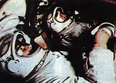 列昂諾夫在太空行走之前 與貝里亞耶夫(左)在“上升”2號中