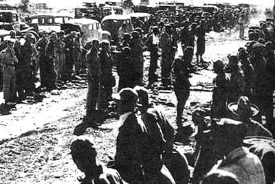 在巴丹島被俘的美軍在等待被押往集中營