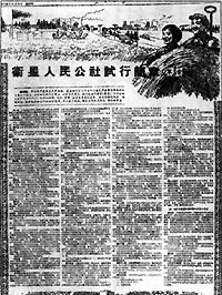 《人民日報》刊登的該社試行簡章 。保梗担改辏丛拢保等,毛澤東著文《介紹一個合作社》,文中對苦戰(zhàn)兩年改變了面貌的河南封丘縣應(yīng)舉社予以肯定。文章認為,共產(chǎn)主義精神已在全國蓬勃發(fā)展,廣大群眾的覺悟已迅速提高。群眾中落后階層奮發(fā)起來,努力趕上先進階層,這個事實標志著我國社會主義的經(jīng)濟革命、政治革命、思想革命、技術(shù)革命、文化革命正在向前奮進。文章認為,中國6億人口的顯著特點是一窮二白。這看起來是壞事,其實是好事。窮則思變,要干,要革命。一張白紙,沒有負擔,寫好最新最美的文字,畫好最新最美的圖畫。
