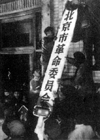 造反派在北京市革命委員會(huì)辦公樓前掛牌