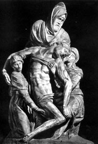 《哀悼基督》又稱《十字架上取下耶酥》,作于1548年~1555年間,是米開(kāi)朗基羅晚期重要的雕刻作品