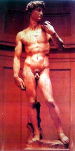 《大衛(wèi)像》高5.5米,有“巨人”之稱,標(biāo)志著米開(kāi)朗基羅的藝術(shù)進(jìn)入成熟期 羅馬西斯廷教堂的大型壁畫(huà)《最后的審判》,是意大利文藝復(fù)興時(shí)期的雕塑家、畫(huà)家米開(kāi)朗琪羅的杰作。全畫(huà)高15米,寬9米,有200多個(gè)形態(tài)各異的人物造像。 壁畫(huà)內(nèi)容取材于古老的宗教傳說(shuō)。但在表現(xiàn)上,它一反傳統(tǒng)宗教畫(huà)的常例:不僅那些被從墳?zāi)怪姓賳境鰜?lái)接受最后審判的死者赤身裸體,就是高高站在云端的基督、環(huán)繞他左右的12門(mén)徒和圣母瑪麗亞,以及那些吹喇叭的天使等,也全是赤條條的一絲不掛。 為什么要采用這樣的形式呢?這是因?yàn)楫?huà)家內(nèi)心里對(duì)羅馬教廷有著極度的憎惡,當(dāng)時(shí),荒淫無(wú)度的羅馬教會(huì),還虛偽地提倡什么“貞潔運(yùn)動(dòng)”。米開(kāi)朗琪羅借題發(fā)揮,把教會(huì)奉為神明的基督和圣母的衣服都去掉了,借此來(lái)影射當(dāng)時(shí)的教皇保羅三世和作惡多端的大小教士。 壁畫(huà)完成后,教皇看了大為不滿,指責(zé)米開(kāi)朗琪羅犯了“冒瀆神祗”的大罪,勒令他抹掉重畫(huà)。畫(huà)家不顧坐牢監(jiān)禁的種種危險(xiǎn),斷然表示拒絕:“一筆也不能改!”教皇無(wú)計(jì)可施,只好另找一位臣服的畫(huà)家,又花了一年的時(shí)間,給基督、圣母瑪麗亞、12門(mén)徒和天使們逐一穿上了色彩絢麗的衣服。 米開(kāi)朗琪羅生于1475年3月6日。他自幼熱愛(ài)繪畫(huà)。13歲到一名畫(huà)家的畫(huà)室學(xué)習(xí)繪事,15歲進(jìn)美迪奇藝術(shù)學(xué)校繼續(xù)學(xué)習(xí)。25歲那年,他的雕刻《巴庫(kù)斯酒神》和《哀悼基督》完成,使他一舉成名。1505年,他的大型雕像名作《大衛(wèi)》完成,使他成為公認(rèn)的“當(dāng)代最偉大的雕塑家”。他一生最喜愛(ài)雕塑,認(rèn)為是“諸藝之首”,因?yàn)榈窨棠苁谷宋锞哂猩。他的名作還有《摩西》石雕像,神情剛毅,氣勢(shì)雄偉,表現(xiàn)出堅(jiān)強(qiáng)意志和力量。 米開(kāi)朗琪羅活到89歲,一天也沒(méi)有停止過(guò)創(chuàng)造性勞動(dòng)。除了畫(huà)畫(huà)、雕刻,他還是一位高明的建筑家,設(shè)計(jì)過(guò)圣彼得大教堂的大圓頂。他也是一位詩(shī)人。他熱愛(ài)祖國(guó),熱愛(ài)自由,勇敢地反對(duì)專制政治。他的不朽杰作,標(biāo)志著文藝復(fù)興時(shí)期藝術(shù)的頂峰,是人類文化寶庫(kù)中珍貴的遺產(chǎn)。