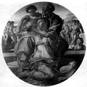 《圣家族》是米開(kāi)朗基羅早期繪畫(huà)作品,始作于1504年