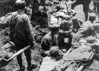 日軍在侵滬戰(zhàn)場上抬下大量的尸體和傷員