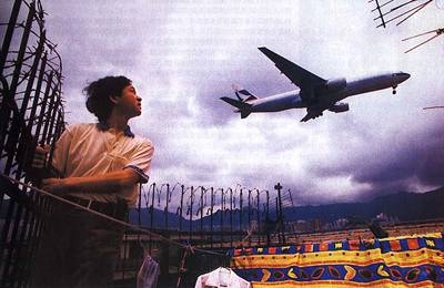 隨著新機(jī)場的啟用,飛機(jī)飛過香港鬧市上空的 景觀將從此消失,市民紛紛告別啟德機(jī)場