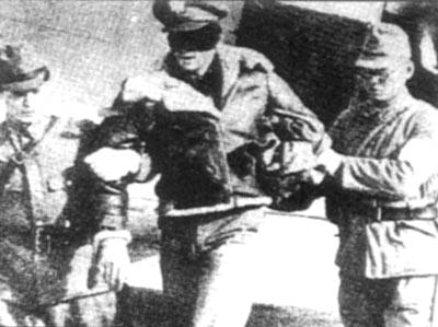 被日軍俘虜?shù)拿儡婏w行員 杜立德的飛機在空襲后飛往中國大陸。因油料用盡,機組人員紛紛跳傘,降落在華東地區(qū)。中國抗日軍民冒著生命危險進行援救,有64名機組人員從日軍眼皮底下被安全送往重慶,只有8名被日軍俘獲。半個世紀后,中美雙方有關(guān)人員曾相聚一黨,歌頌這段用鮮血凝成的友誼篇章。