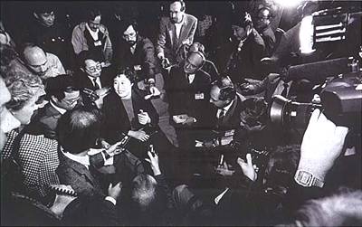1984年,遼寧省的關(guān)廣梅第一個(gè)搞起奪標(biāo)承包,連續(xù)租賃了8家副食品商店,組成了全國(guó)第一個(gè)租賃企業(yè)集團(tuán)--東明商業(yè)集團(tuán),關(guān)廣梅成為全國(guó)經(jīng)營(yíng)租貸企業(yè)的第一人,被理論界稱為關(guān)廣梅現(xiàn)象。這是中共“十三”大期間,作為大會(huì)代表的關(guān)廣梅在接受記者的采訪。