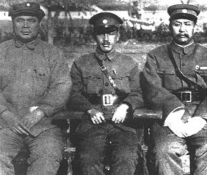1930年4月1日,閻錫山就任“中華民國軍總司令”,馮玉祥、李宗仁就任副總司令,3人分別在太原、潼關(guān)、桂平宣誓就職。馮玉祥在就職宣言中指斥蔣介石為國家動亂不安的禍根,歷數(shù)了蔣介石踐踏民主,弄權(quán)賣國的種種惡端,并發(fā)誓要為國家除此禍害。 宣言稱:“近月以來,陜甘兩省,大股土匪,到處焚掠,凡經(jīng)被掠之人,周身悉現(xiàn)鐵烙。迨軍隊拘獲匪首,其身邊皆帶有委任狀,乃煌煌全國主席蔣中正所頒發(fā),至有數(shù)十路之多。”閻錫山就職通電稱:“將統(tǒng)率各軍,陳師中原,以救黨國。古有挾天子以令諸侯者,全國必有而討伐之,今有挾黨部以作威福者,全國人亦必起而討伐之。”  蔣介石與馮玉祥(左)、閻錫山合影 (1930)