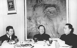 周恩來(lái)總理與趙樸初(中)在一起。柬埔寨西哈努克親王在座。