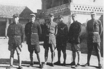1936年,聶榮臻(左三)、左權(quán)(左一)等紅軍部分將領(lǐng)合影。5月至7月,聶榮臻等率紅一軍團(tuán)參加“西征”,給馬鴻逵、馬鴻賓部以沉重打擊。