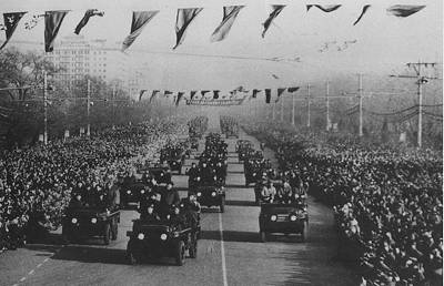 毛澤東檢閱紅衛(wèi)兵的車隊行進在長安街上 1966年5月16日,中共中央政治局會議通過了由毛澤東主持起草的《中國共產黨中央委員會通知》(簡稱《五一·六通知》)。它針對同年2月中共中央轉發(fā)的《文化革命五人小組關于當前學術討論的匯報提綱》(即《二月提綱》),提出了進行“文化大革命”的一整套理論、方針和政策;宣布撤銷《二月提綱》和“文化革命五人小組”及其辦事機構,重新設立在政治局常委領導下的中央文化革命小組(即“中央文革”)。