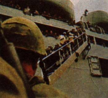 “珊瑚海”號營救船在航行途中 1975年5月7日。福特總統(tǒng)簽署一項公告,停止發(fā)放戰(zhàn)時退伍軍人津貼費,這實際上是宣告了越南戰(zhàn)爭的結束。“美國已不再處于戰(zhàn)爭狀態(tài)了。”總統(tǒng)在一項聲明中宣布結束了“越南時代”。這一公告是美國撤出戰(zhàn)斗部隊兩年之后和共產黨攻占西貢一周之后發(fā)出的。早些時候,國防部命令撤回美國海軍船只,這些船只正在搭救乘船逃出南越的難民。眾議院否決了撥款3.27億美元援助越南難民以及使用地面部隊幫助撤離的議案。如此眾多的人反對安置13萬越南難民,令福特總統(tǒng)“極為氣惱”。