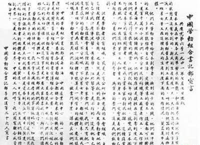 刊登在報刊上的中國勞動組合書記部成立宣言