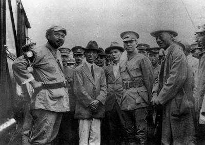 1927年6月20日馮玉祥同蔣介石在徐州開(kāi)會(huì),決定 合作反共、反蘇,并促成南京政府和武漢政府合作 會(huì)后,馮玉祥(前排左1)和蔣介石(前排左3)合影 1927年6月22日,馮玉祥與蔣介石在徐州舉行會(huì)議后回到鄭州,即命徐謙制定“清黨”章程。 馮軍中有中共黨員五六十人,大都在政治部工作。馮下令:“全軍各級(jí)政工人員,一律到開(kāi)封受訓(xùn)及甄別:(1)自己報(bào)告是否共黨;(2)凡是共黨,一概脫離政治部;(3)如有共黨仍欲繼續(xù)國(guó)民革命工作者,須宣布脫離共黨而誓忠于國(guó)民黨。”令既下,首先解職者為中共黨員、國(guó)民軍政治部主任劉伯堅(jiān)。另有四十余名中共黨員被查出。