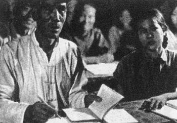 小靳莊社員在政治夜校里學(xué)習(xí)