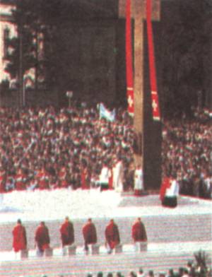 1979年6月10日,約翰-保羅二世教皇為100萬(wàn)人做了彌撒,從而結(jié)束了他前所未有的對(duì)他的出生國(guó)波蘭109天的旅行。這是教皇首次到主張無(wú)神論的共產(chǎn)黨國(guó)家進(jìn)行訪問(wèn)。在這天的說(shuō)教中,教皇對(duì)一些政治問(wèn)題避而不談。他在講話中奉勸波蘭人民,“用信仰的力量壯大自己”。這天的彌撒是紀(jì)念波蘭的保護(hù)圣徒“圣-斯坦尼斯勞斯”。由于政府不允許教皇在圣人周年紀(jì)念日的那天來(lái)訪,因此,波蘭天主教會(huì)把慶;顒(dòng)一直推遲到教皇的到達(dá)之時(shí)。