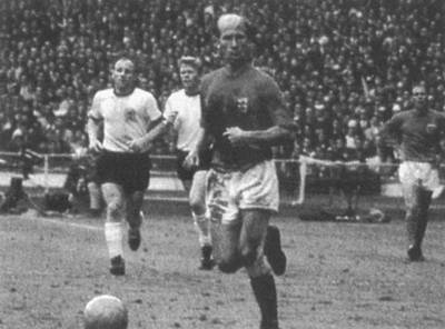 1966年7月30日,在倫敦溫布利體育場上,英格蘭足球隊當著93000名觀眾的面以4:2擊敗西德隊,奪得了世界杯賽冠軍。這是這個號稱現(xiàn)代足球鼻祖的國家第一次成為真正意義上的世界冠軍。在這場比分咬得極緊的比賽中,西德隊在開場13分鐘后領(lǐng)先,但6分鐘后喬夫-赫斯特把比分扳平。在下半場即將結(jié)束前,馬丁-彼得斯使英格蘭處于領(lǐng)先地位,但在終場前幾秒鐘韋貝爾的一次射門把比分拉到2:2平。在加時賽中,英格蘭隊勢頭達到鼎盛,喬夫-赫斯特又射進兩球,成為世界杯決賽中唯一以頭球得分的隊員。  1966年英國隊奪得世界杯冠軍,博比-查爾頓功不可沒